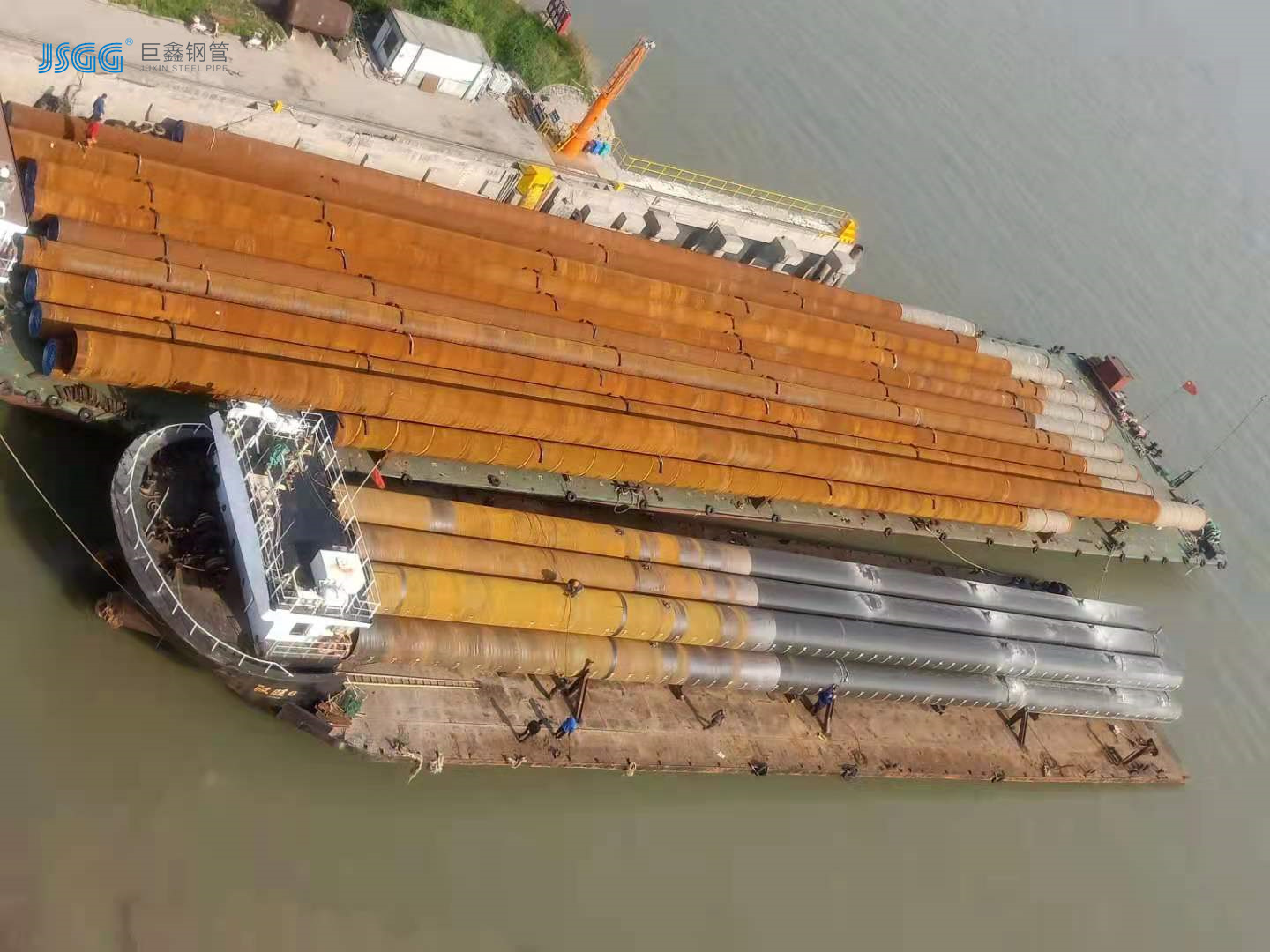 江蘇巨鑫鋼管海工基地發(fā)運(yùn)中交四航局廣東石化碼頭鋼管現(xiàn)場一