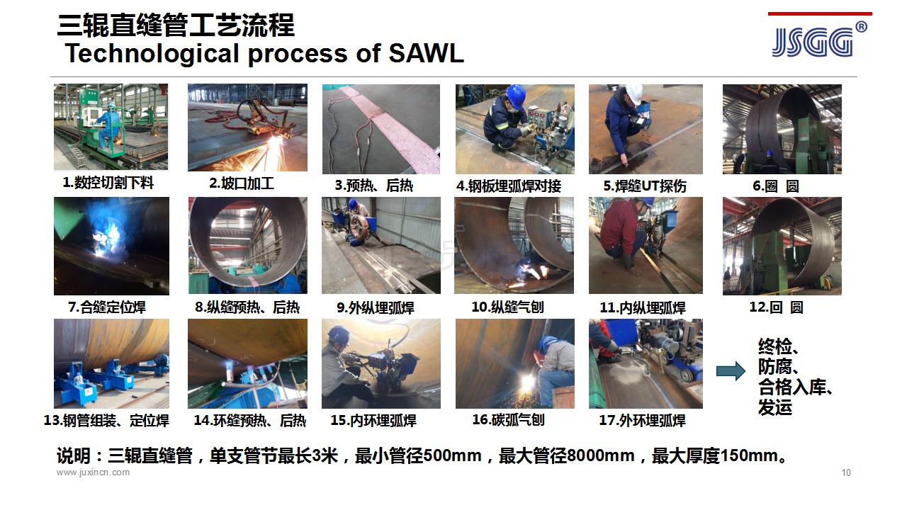 江蘇巨鑫石油鋼管有限公司坐落于風(fēng)景秀麗的古城揚(yáng)州,現(xiàn)有1條國(guó)內(nèi)領(lǐng)先水平JCOE直縫雙面埋弧焊管生產(chǎn)線,5套三輥鋼板卷制成型直縫雙面埋弧焊管生產(chǎn)設(shè)備,4條螺旋縫雙面埋弧焊管生產(chǎn)線,年設(shè)計(jì)生產(chǎn)能力達(dá)40萬(wàn)噸??膳抗?yīng)φ219~φ7000mm,壁厚為4mm~150mm,單位長(zhǎng)度1.5m-120m的焊管,并可配套供應(yīng)各種鋼管管件及各種形式的防腐鋼管,產(chǎn)品廣泛應(yīng)用于碼頭及橋梁樁基、航道疏浚、海上風(fēng)電、高鐵和地鐵深基礎(chǔ)、城市管網(wǎng)、鋼結(jié)構(gòu)、特高壓輸電網(wǎng)等領(lǐng)域。
