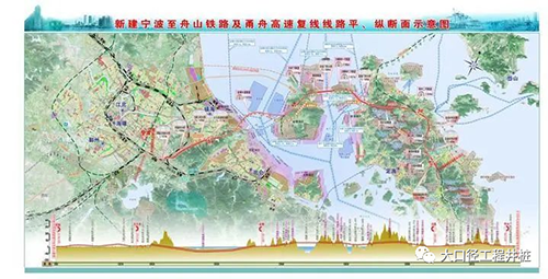 新建寧波至舟山鐵路及甬舟高速復(fù)線線路平、縱斷面示意圖