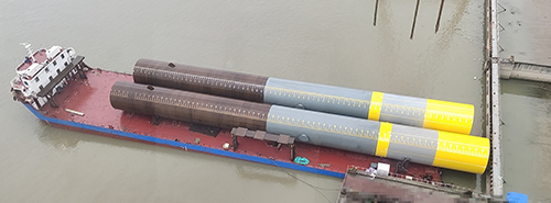 江蘇巨鑫制作的最高鋼級海上風(fēng)電鋼管樁順利發(fā)運(yùn)中國鐵港航局大連莊河項(xiàng)目