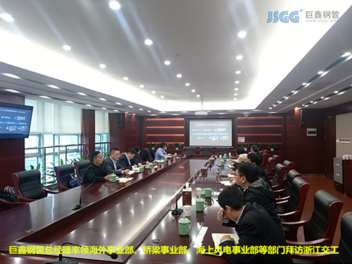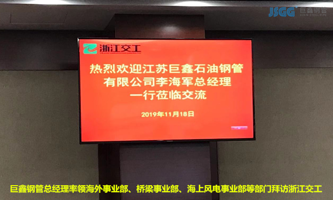 為了感謝浙江交工長(zhǎng)期以來對(duì)巨鑫鋼管的幫助和支持,同時(shí)也為能進(jìn)一步提高巨鑫鋼管的服務(wù)質(zhì)量。2019年11月18日,巨鑫鋼管總經(jīng)理李海軍率橋梁碼頭事業(yè)部、高鐵地鐵事業(yè)部、海上風(fēng)電事業(yè)部、城市管網(wǎng)事業(yè)部、海外事業(yè)部五大部門經(jīng)理集體拜訪了浙江交工集團(tuán)。
